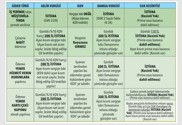 2026 yılı SGK yemek yardımı istisnası