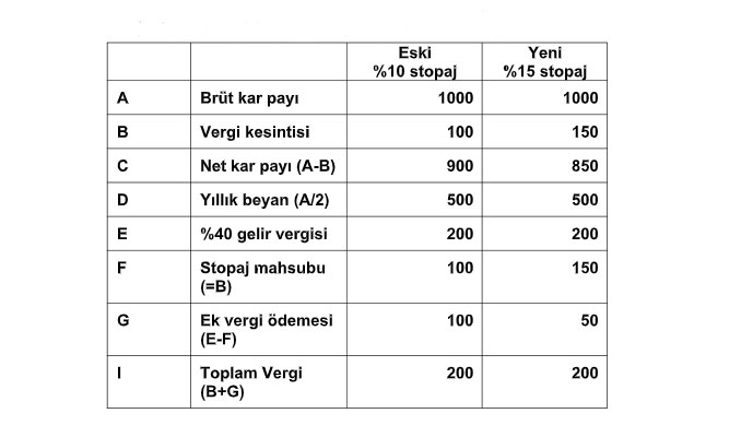 Stopaj artışı sonrası kâr payı vergilendirmesi aşağıdaki gibi olmaktadır.