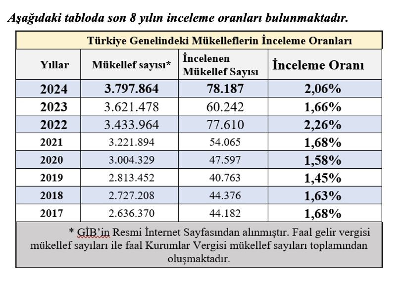 2024 yılında toplamda 261 bin 785 adet inceleme yapılmış bunun 218 bin 197 adedi sınırlı; 43 bin 588 adedi ise tam incelemedir.