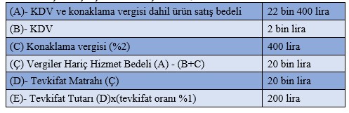 Buna göre Batı A.Ş. Mayıs ayındaki bu işlemden dolayı KDV ve konaklama vergisi hariç tutar üzerinden yüzde 1 stopaj yapacak -ki örneğimize göre 200 lira- bunu Haziran ayında muhtasar beyanname ile beyan edip ödeyecektir. Ürünü satın alan Sertuğ-Gülay çiftinin bu tarz herhangi bir yükümlülüğü bulunmamaktadır.