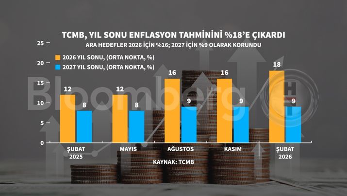 2026 enflasyon tahmini yüzde 15-21 aralığında oldu. Önceki yüzde 13-19 aralığıydı. Ara hedef ise 2026 için yüzde 16 olarak korundu.