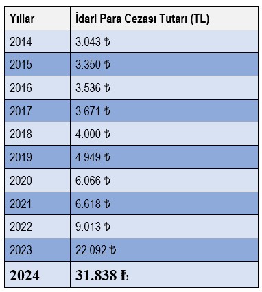 Aşağıda tabloda yıllar itibariyle idari para cezaları görülmektedir.