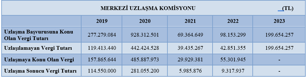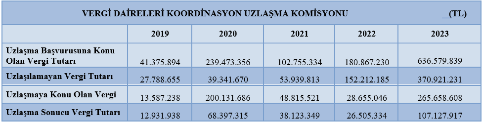 Aşağıdaki tabloda görüldüğü üzere Vergi Daireleri Koordinasyon Uzlaşma Komisyonuna uzlaşma sonucu silinen vergi aslı 158 milyon 530 bin 691 liradır.